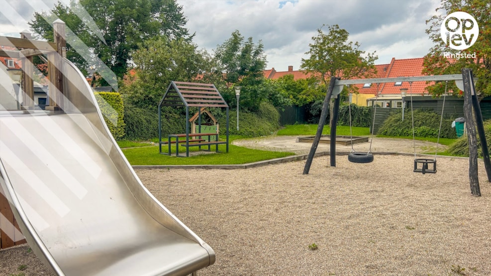 Legepladsen er indhegnet.